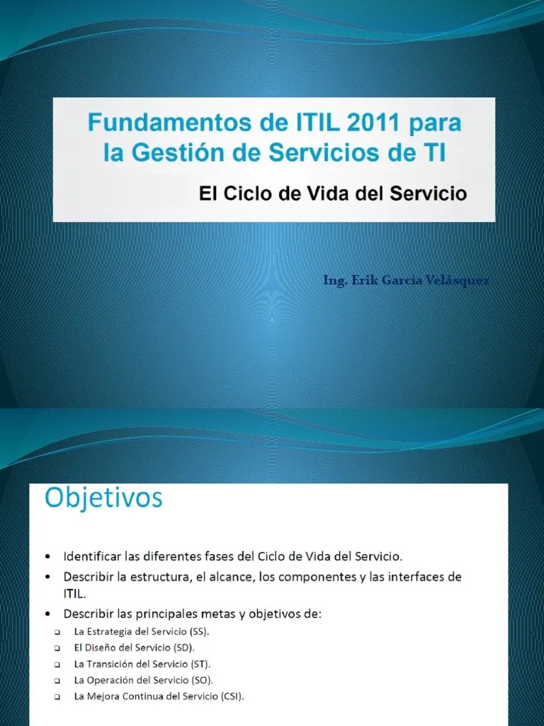 Es un programa que se adapta a las necesidades de la. .. El itil no es un plan totalmente estricto;